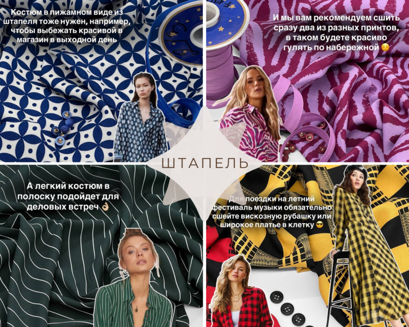 3. Разнообразие расцветок и фактур: Штапель доступен в широком ассортименте цветов и принтов. Это позволяет легко подобрать ткань под любой стиль и концепцию.