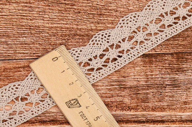 Кружево вязаное, хлопковое, 27 мм, серый лен (F307)